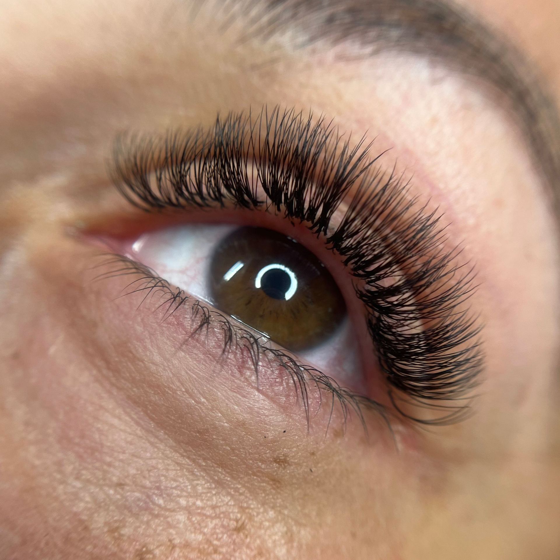 Bei der Wimpernverlängerung werden einzelne Wimpernextensions (Seidenwimpern) auf die natürlichen Wimpern appliziert/geklebt. Die 1:1 Technik bedeutet, dass eine künstliche auf eine natürliche Wimper appliziert wird. Die Volumen-Technik besteht aus selbstgestalteten Wimpernfächern, die auf die Naturwimper appliziert werden. Von 2D- bis 6D Volumen Technik möglich. Hier werden zb. drei künstliche Wimpern (3D) als Fächer kreiert und auf eine natürliche Wimper appliziert.